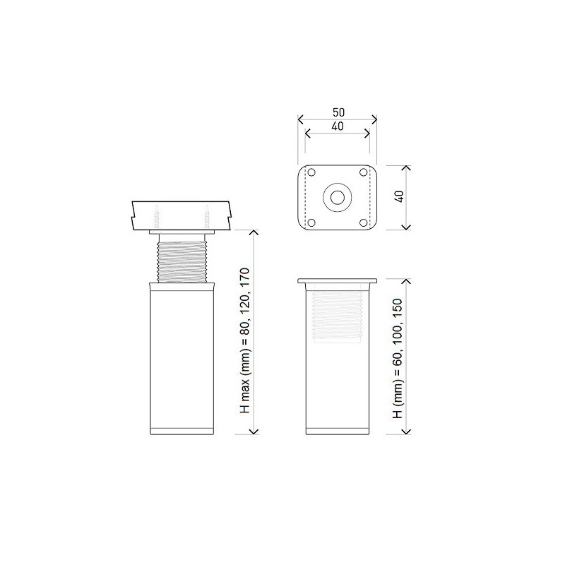 • Nóżka meblowa wykonana z kwadratowego profilu aluminiowego 40x40 mm pokrytego białym lakierem proszkowym