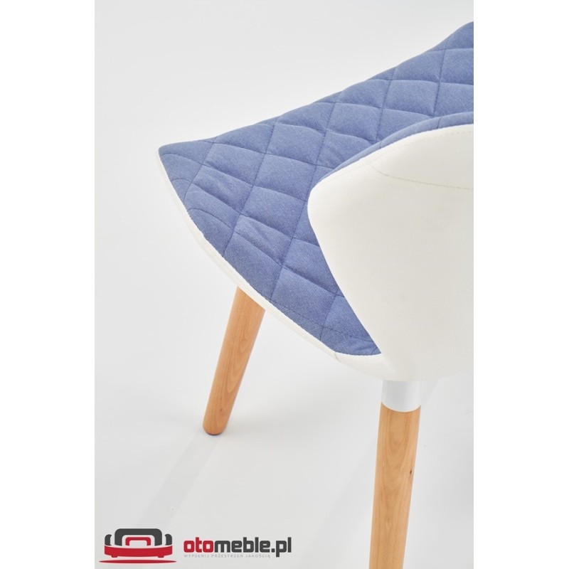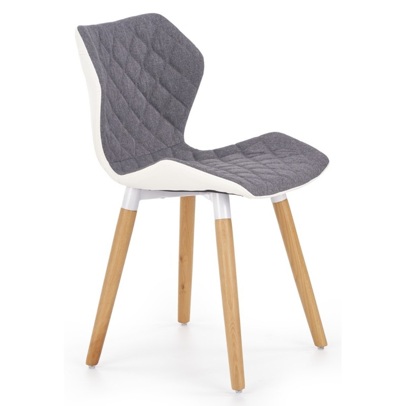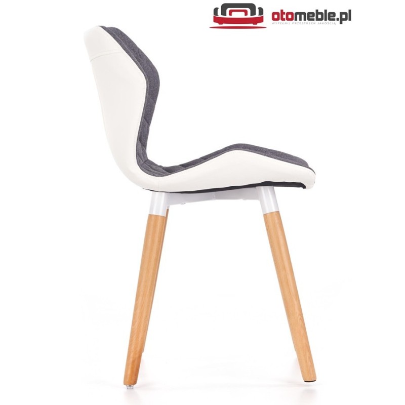 Model K277 doskonale sprawdzi się w jadalni, salonie, kuchni, pokoju nastolatka, czy jako krzesło do toaletki. Z powodzeniem może zostać wykorzystane także we wnętrzach restauracyjnych, kawiarnianych, czy sali konferencyjnej. Dzięki ciekawej linii i kontrastowemu obiciu stanie się mocniejszym akcentem w każdym wnętrzu, dodającym całości charakteru. Pasuje zarówno do bardzo nowoczesnych aranżacji, jak i tych inspirowanych stylem skandynawskim. Siedzisko tego krzesła na drewnianych nogach obszyte zostało przyjemną w dotyku i wytrzymałą tkaniną obiciową. Jego plecy pokryto natomiast białą ekoskórą, co nadało mu lekkości. Nogi wykonane są z litego drewna pomalowanego bezbarwnym lakierem. Oprócz ciekawego bardzo nowoczesnego designu, zaletą tego modelu marki Halmar jest komfort użytkowania. Jego siedzisko zostało bowiem ergonomicznie wyprofilowane. Producent zadbał także o to, aby jego wysokość pasowała do standardowego stołu czy biurka. Konstrukcja krzesła na drewnianych nogach K277 jest stabilna, ale dość lekka, przez co jest łatwe do przesuwania i przenoszenia.
