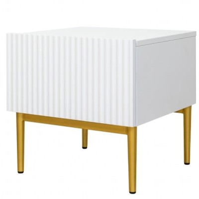 Szafka nocna LIMA SN1 od firmy Halmar z dolną wysuwaną szufladą. Korpus wykonany z białej płyty meblowej, front oraz blat w wysokim połysku.