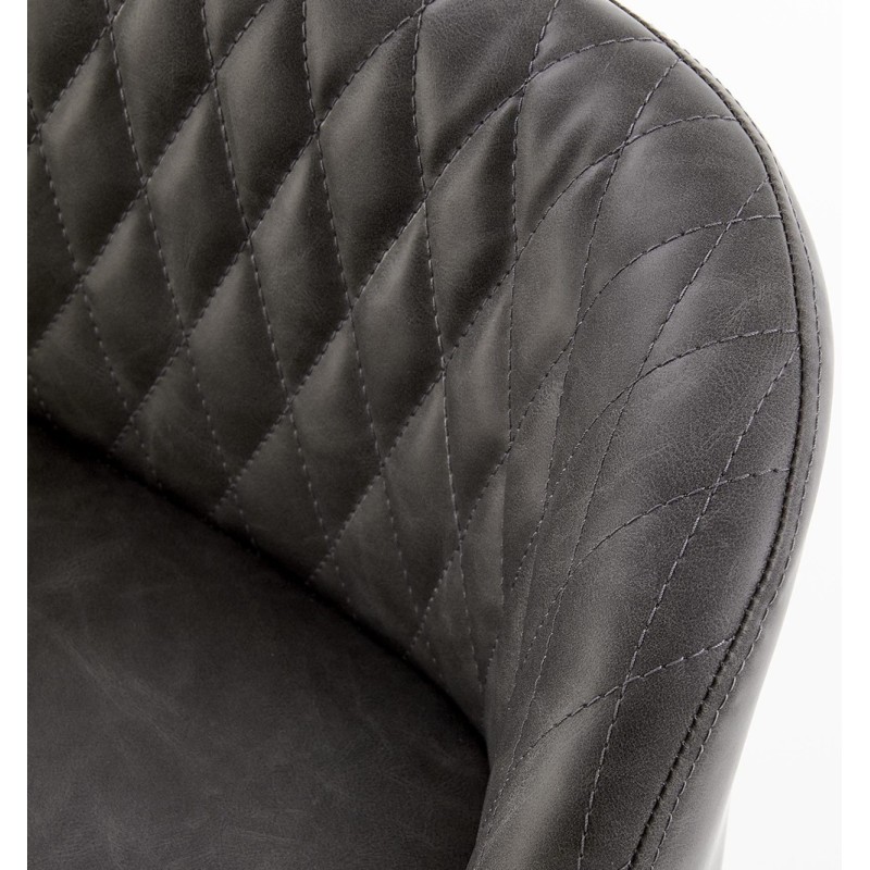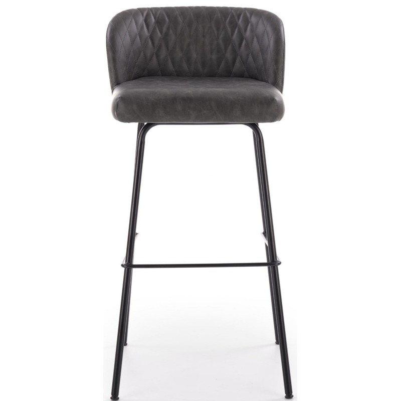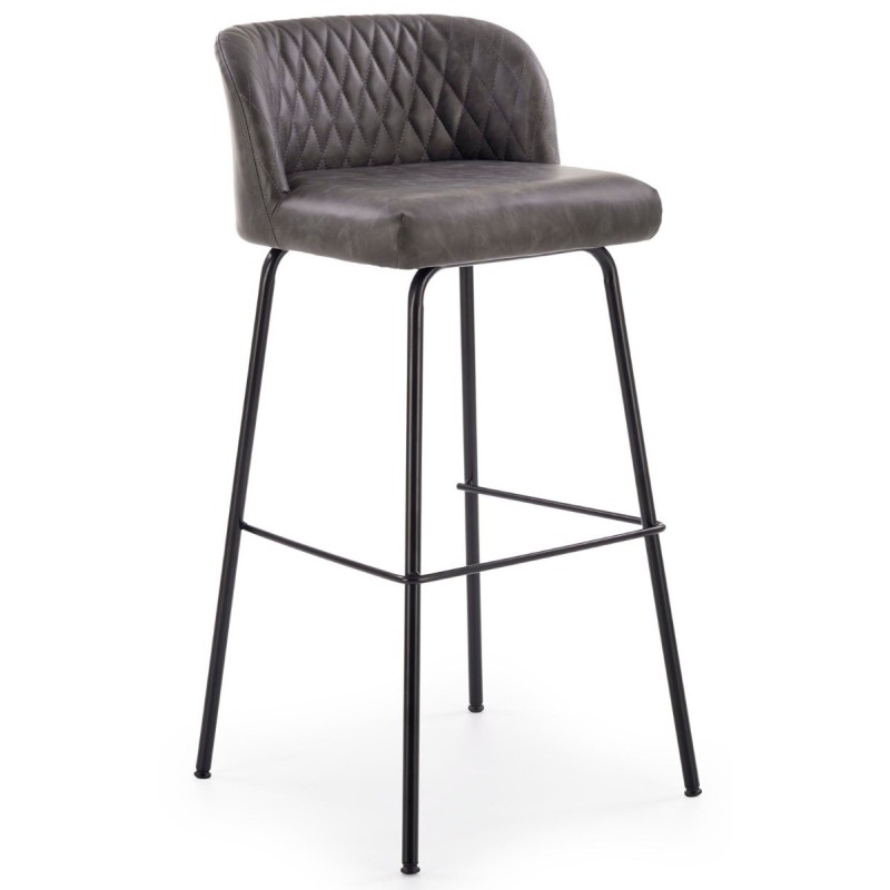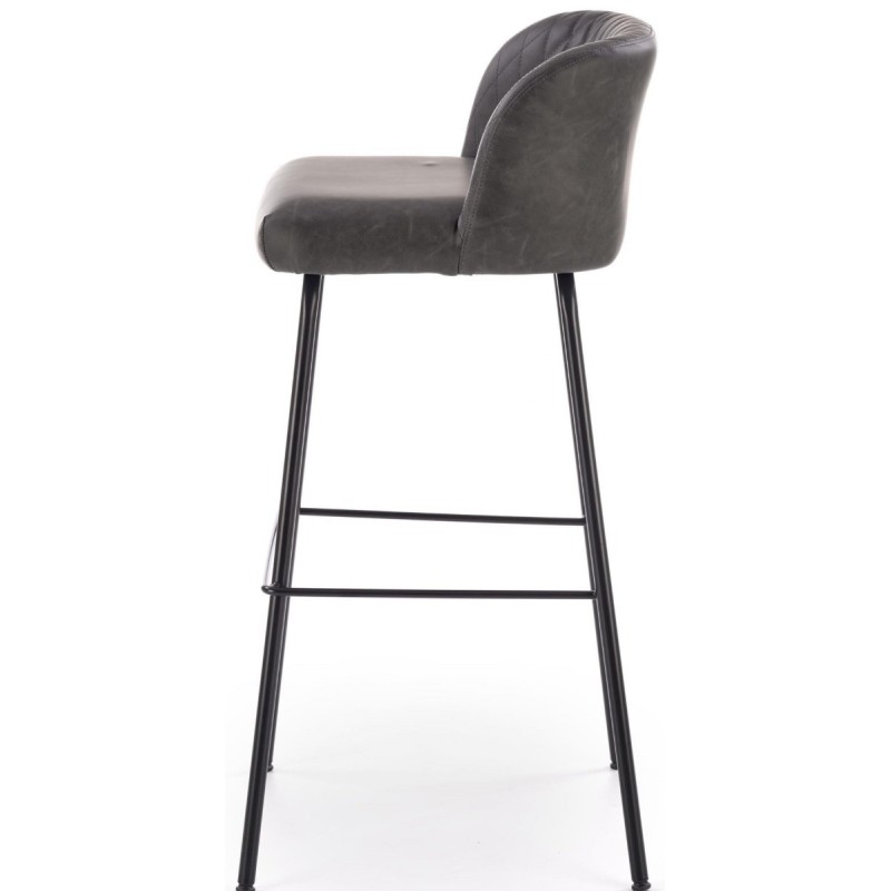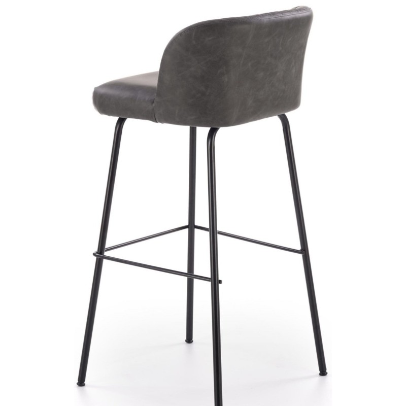 Siedzisko obszyte eco skórą w kolorze ciemny popiel. Jest łatwe do utrzymania w czystości i wytrzymałe. Dzięki oparciu zapewnia wystarczającą wygodę dla użytkownika. Mebel będzie świetnie wyglądał przy tradycyjnych, drewnianych barkach oraz bardziej nowoczesnych i designerskich meblach. Stołki barowe H92 pozwolą w wyczarowaniu niezwykłego klimatu w mieszkaniu oraz klubie czy restauracji.