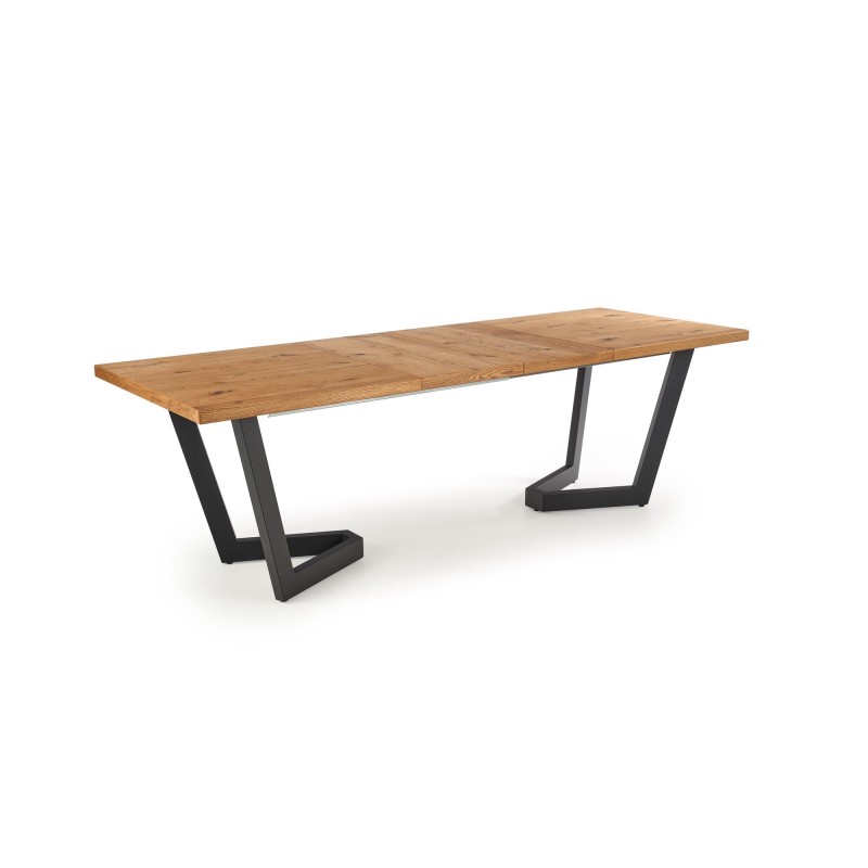 Stół loft MASSIVE 160→250×90 cm z fornirowanym blatem jasny dąb i czarną stalą — styl industrialny i funkcjonalność w jednym.