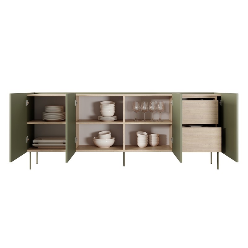 Komoda czterodrzwiowa z 2 ukrytymi szufladami Desin 220 cm - oliwka / dąb nagano